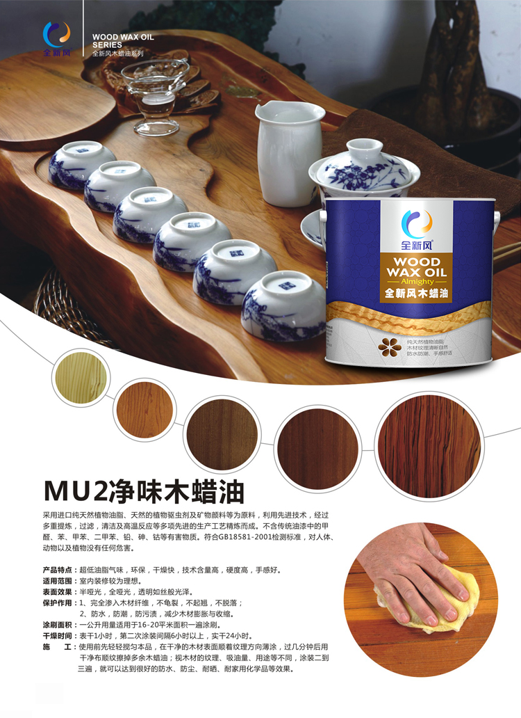 采用进口纯天然植物油脂、及矿物颜料等为原料,利用先进技术,经过多重提炼,过滤,高温反应等多项先进的生产工艺精炼而成。不含传统油漆中的甲醛、苯、甲苯、二甲苯、铅、砷、镉等有害物质。符合GB18581-2001检测标准,对人体、动物及植物没有任何危害。